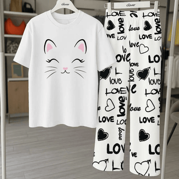 2 Pcs Women's Printed Jersey Night Suit | Soft & Stylish Nightwear
